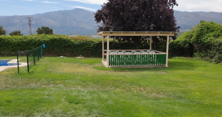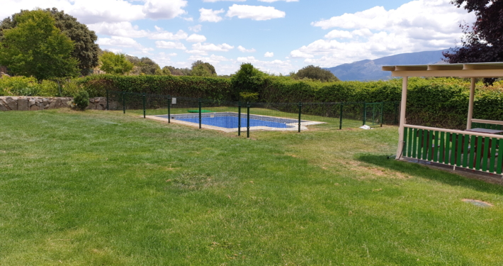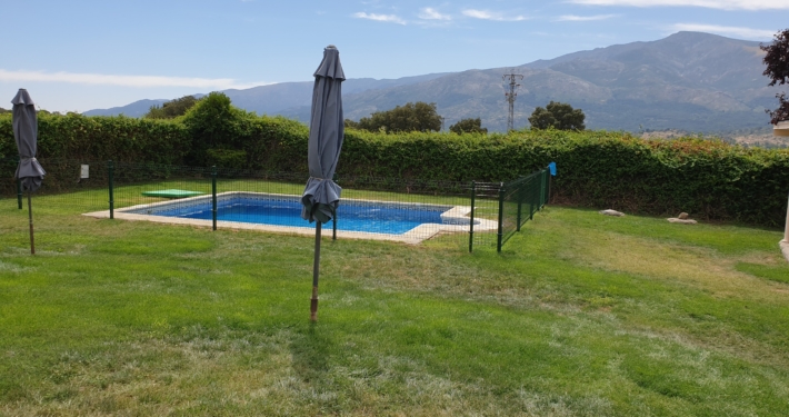 Exterior: La Casa se encuentra en una parcela totalmente vallada. dispone de aparcamiento, piscina vallada por seguridad para los pequeños, zona de jardín con más de 1.000 m2, merendero cubierto, barbacoa cubierta comunicada con la cocina.