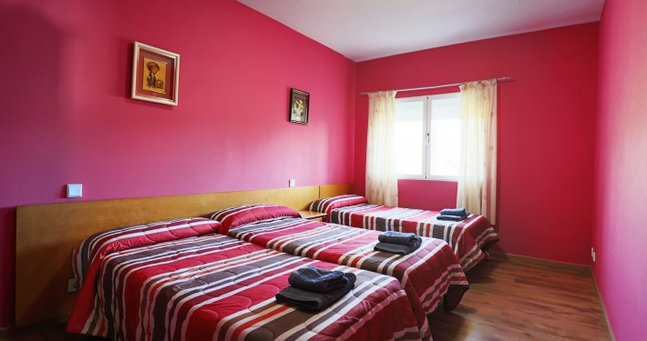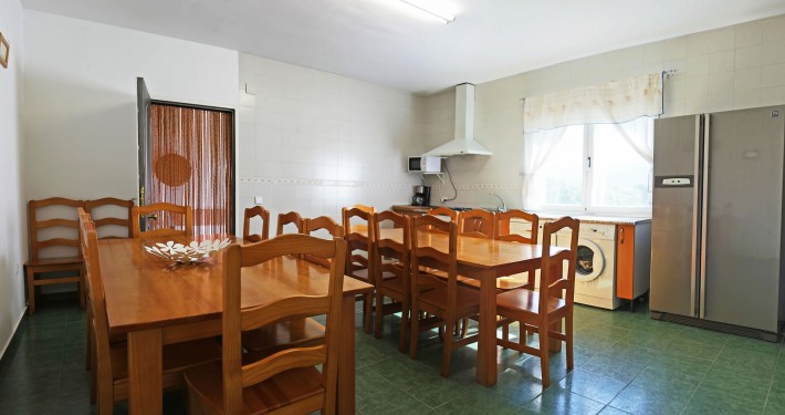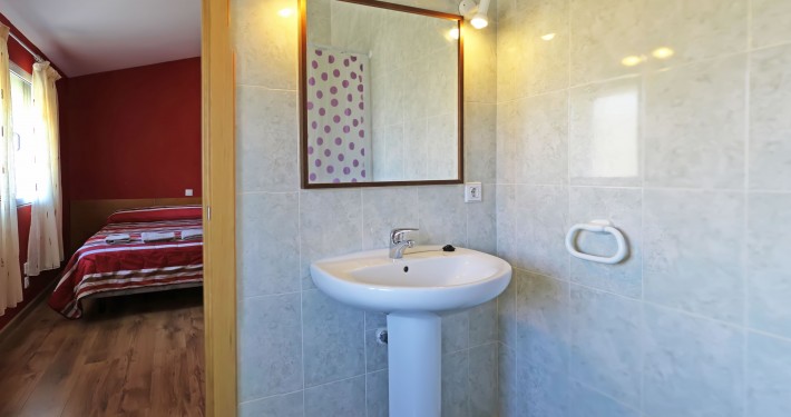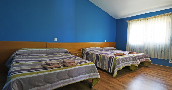 Planta alta: 2 habitaciones de 4 plazas con baño, 1 habitación de 3 plazas con baño, 1 habitación de matrimonio con baño, 2 habitaciones comunicadas para matrimonios con niños para 4 plazas con baño, Terraza cubierta.
