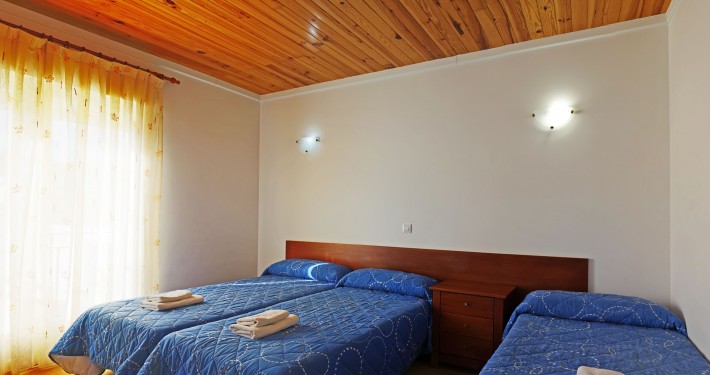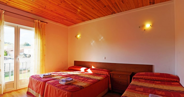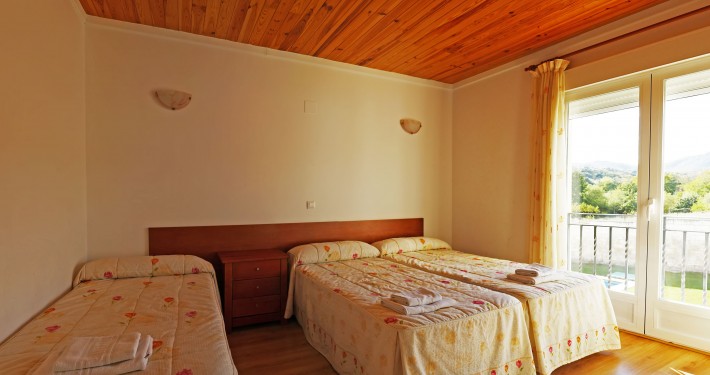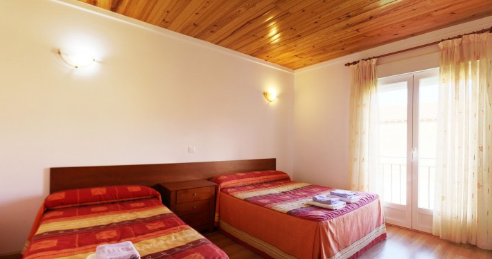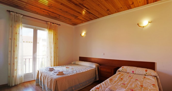 Planta alta: hasta un total de 17 habitaciones de 3 y 5 plazas, todas con baño y armario empotrado.